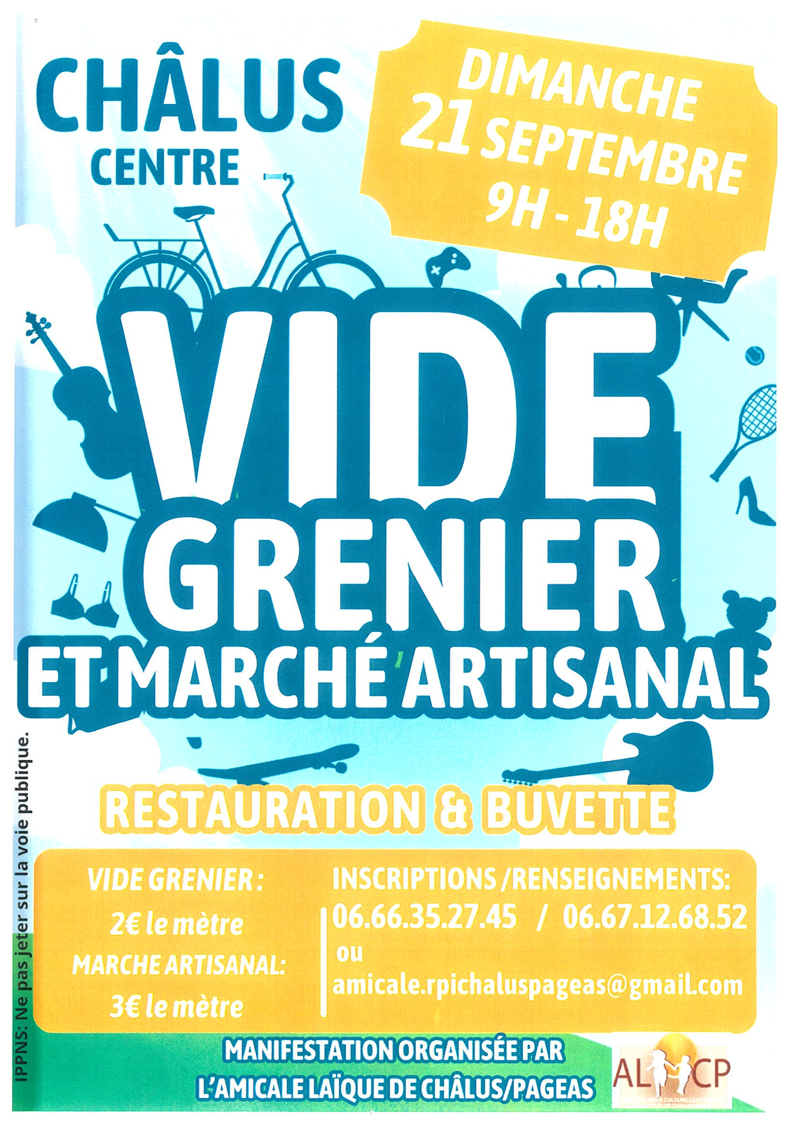 Vide grenier amicale laïque Châlus Pageas dimanche 21 septembre 2025