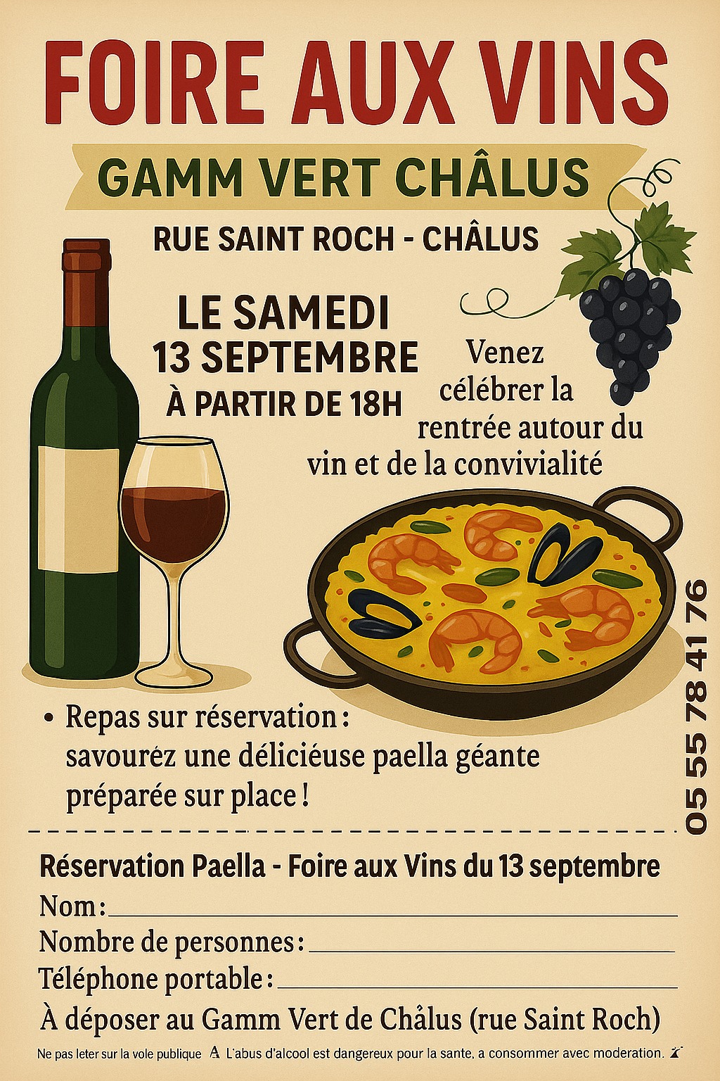 Soirée foire aux vins samedi 13 septembre 2025 à Châlus