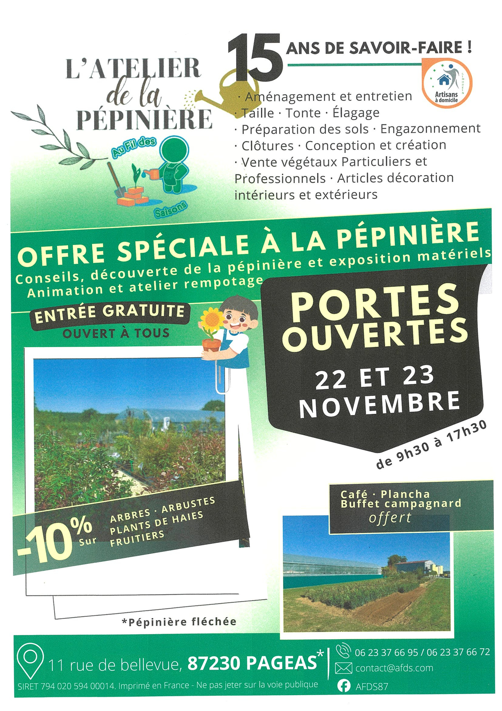 L'ATELIER DE LA PÉPINIÈRE - PORTES OUVERTES 22 ET 23 NOVEMBRE