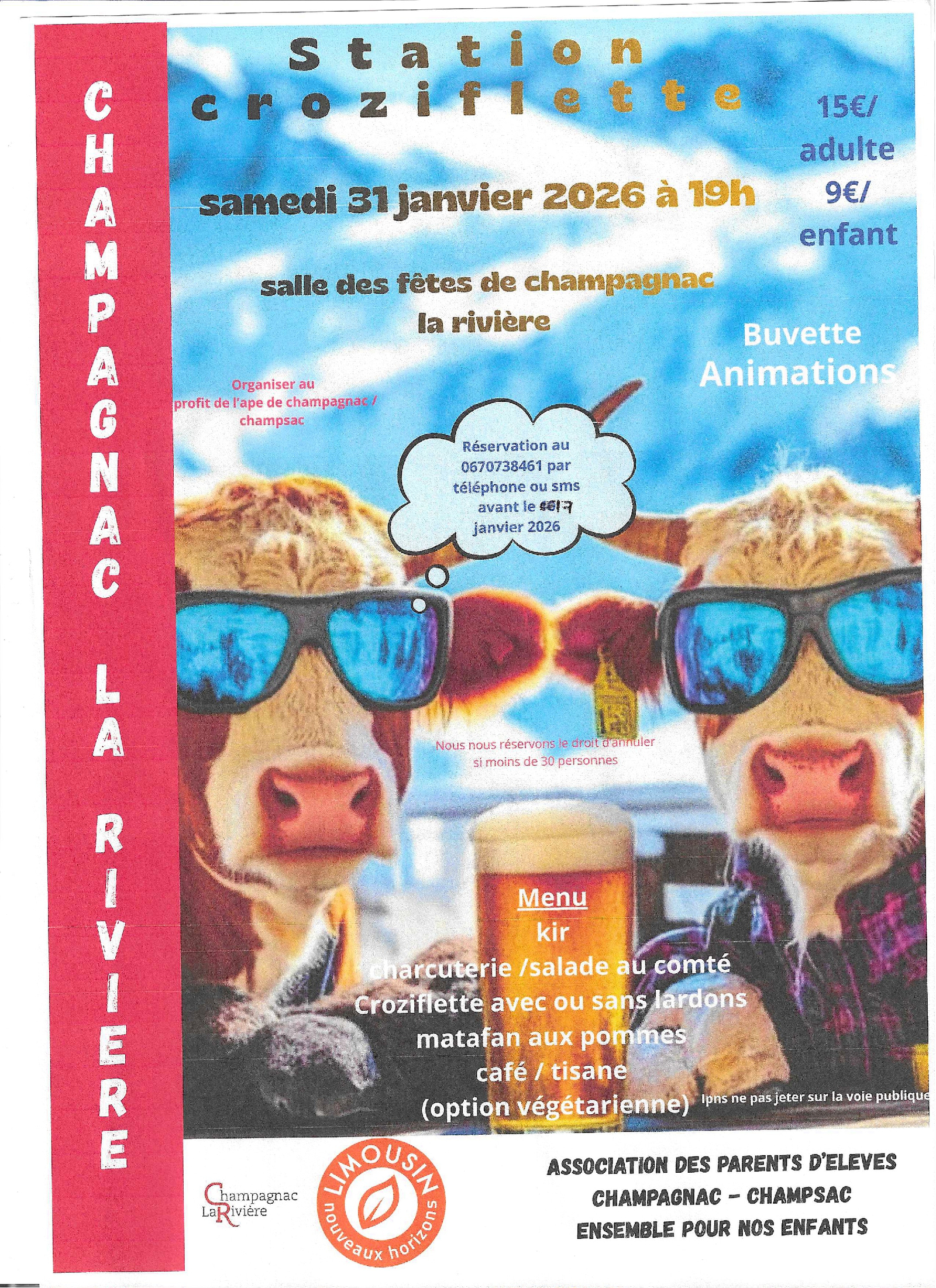 Repas croziflette - samedi 31 janvier Champagnac la Rivière