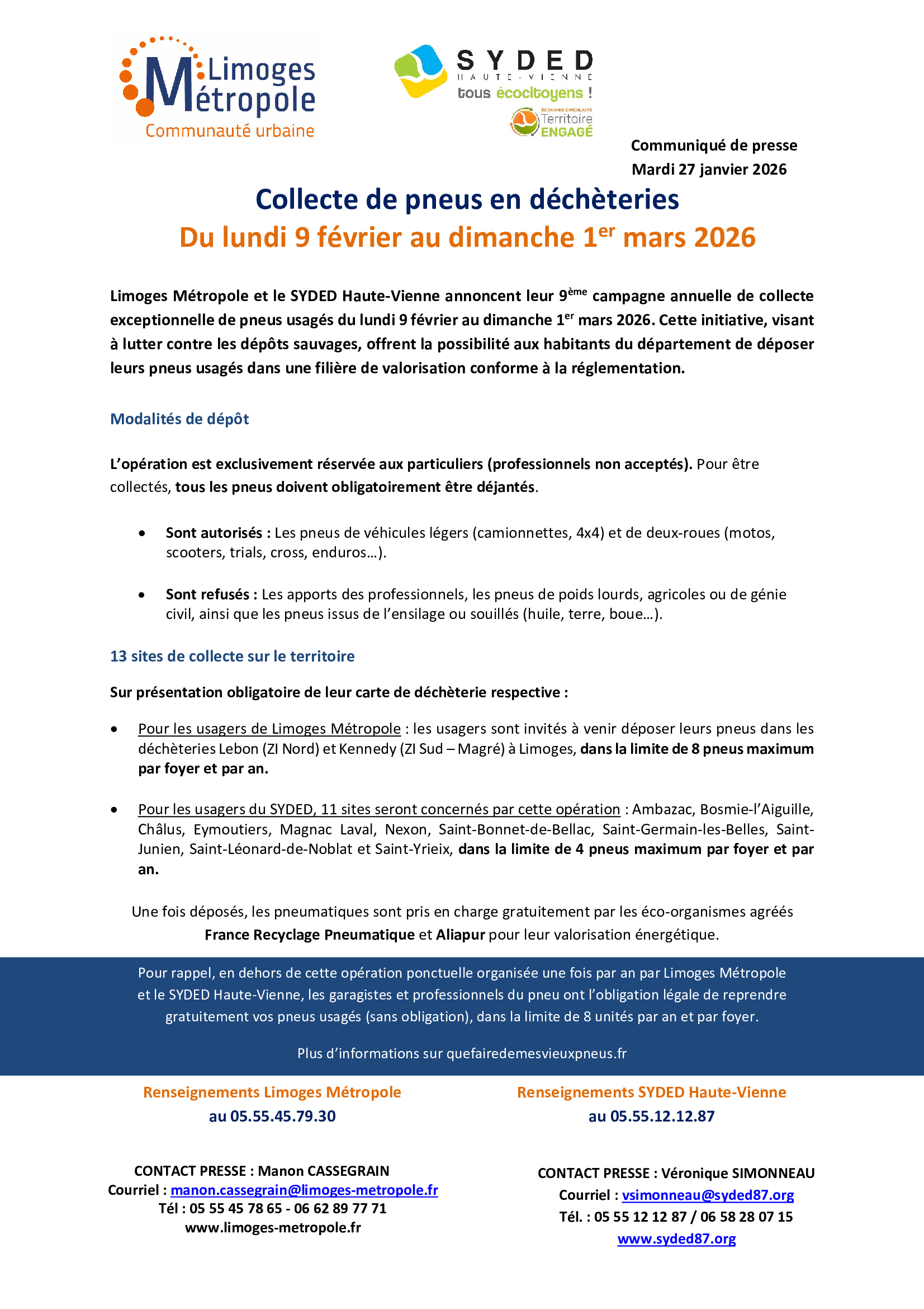 Opération collecte de pneus à partir du 9 février